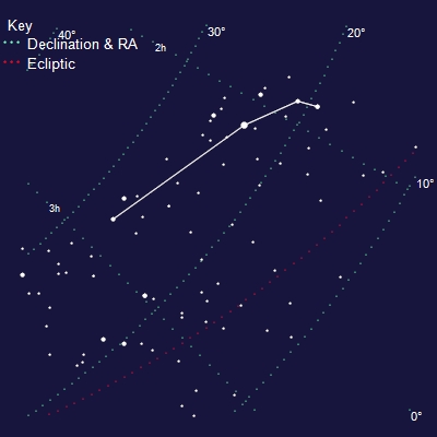 Or maybe it’s just a golden fleece, laid flat, from the side. It can be drawn with more lines and have a picture of a sheep superimposed over it too. Either way, it’s got some stuff going on. Near the star Sharatan, one of the brighter ones marking the head, is NGC 772, a nice spiral galaxy that’s visible as a fuzzy patch in 4-5″ scopes. Just “in front” of that is Gamma Arietis, which is a triple star system, though you’ll only see two of them. It has the distinction of being on of the first double stars to be discovered. Lambda Arietis is also a double star and delta Arietis has an orange color that would be interesting to observe. There are some other observable, but potentially challenging, galaxies near by as well, if you’re into that.